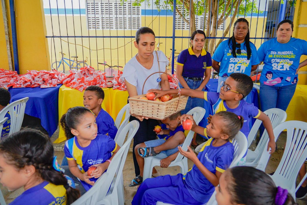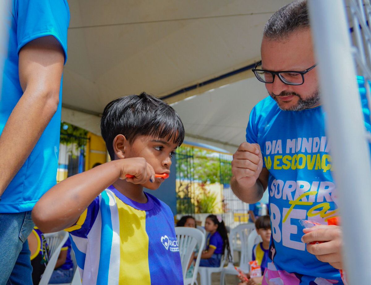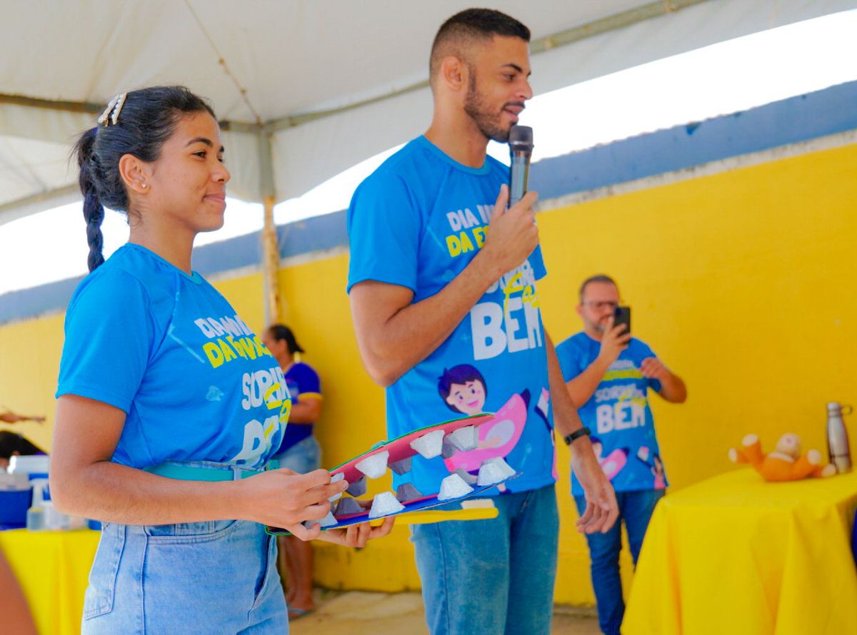 No dia 22 de outubro, a Prefeitura de Araçoiaba promoveu uma ação especial em comemoração ao Dia Mundial do Sorriso, realizada em frente à Escola Amaro Soares. O evento contou com a parceria da Colgate Brasil, levando alegria, orientações e cuidados com a saúde bucal para crianças e famílias do município.
